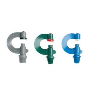 Boogsproeiers voor de tuinbouw met aansluiting 3/8ww of M11. De sproeiers zijn kleurgecodeerd, volgens de afgifte. De sproeiers zijn bestand tegen de in de glastuinbouw gebruikelijke chemicaliën. Boogsproeiers worden gebruikt als er een klein bereik met een hoge afgifte nodig is en er een mindere verdeling geaccepteerd kan worden. Strookberegeningssproeiers zijn speciaal voor gebruik in smalle teeltbedden.