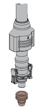 - Loskoppelbare verbinding met klemmetjes voor PE waar een snelle (ont)koppeling van sproeiers noodzakelijk is en bovendien extra bedrijfszekerheid gewenst is.